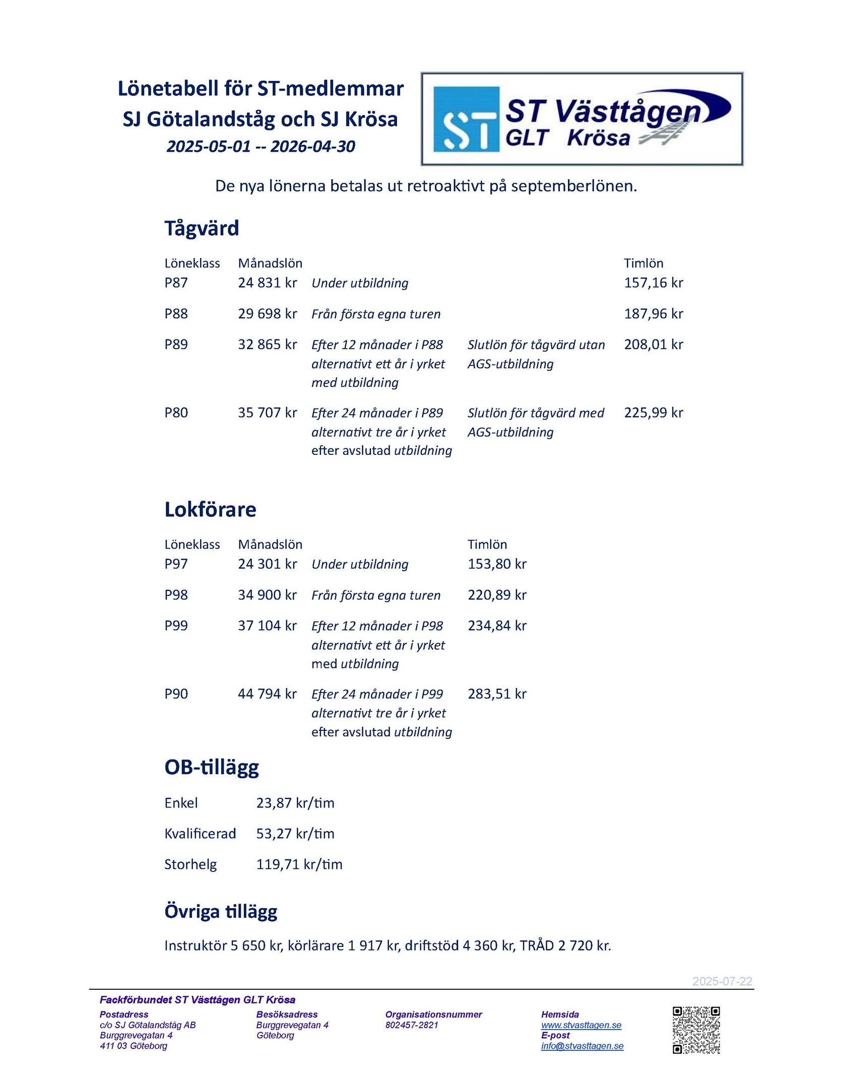 Aktuella tarifflöner och tillägg